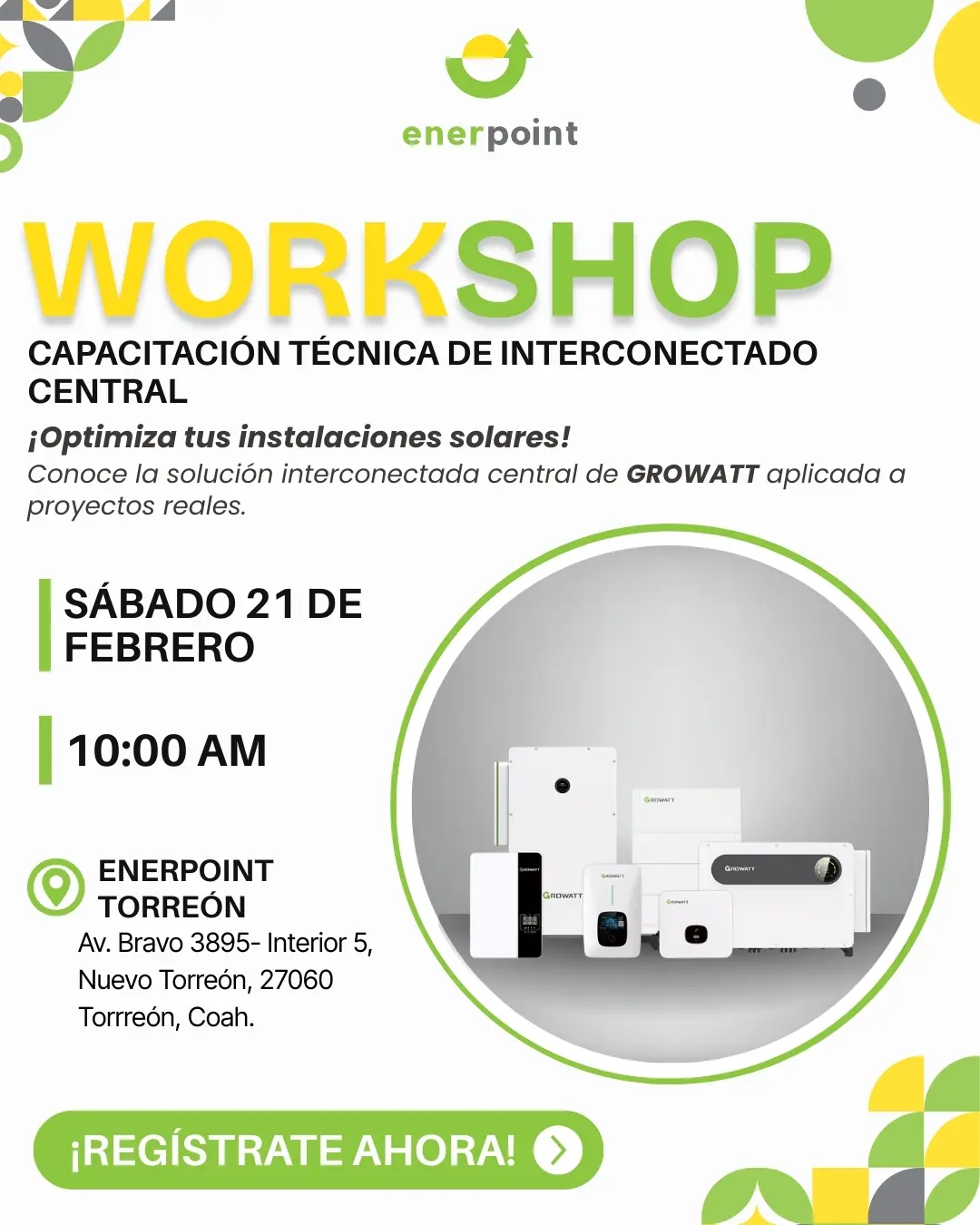 Participa en nuestra clase técnica enfocada en sistemas interconectados centrales con tecnología Growatt.